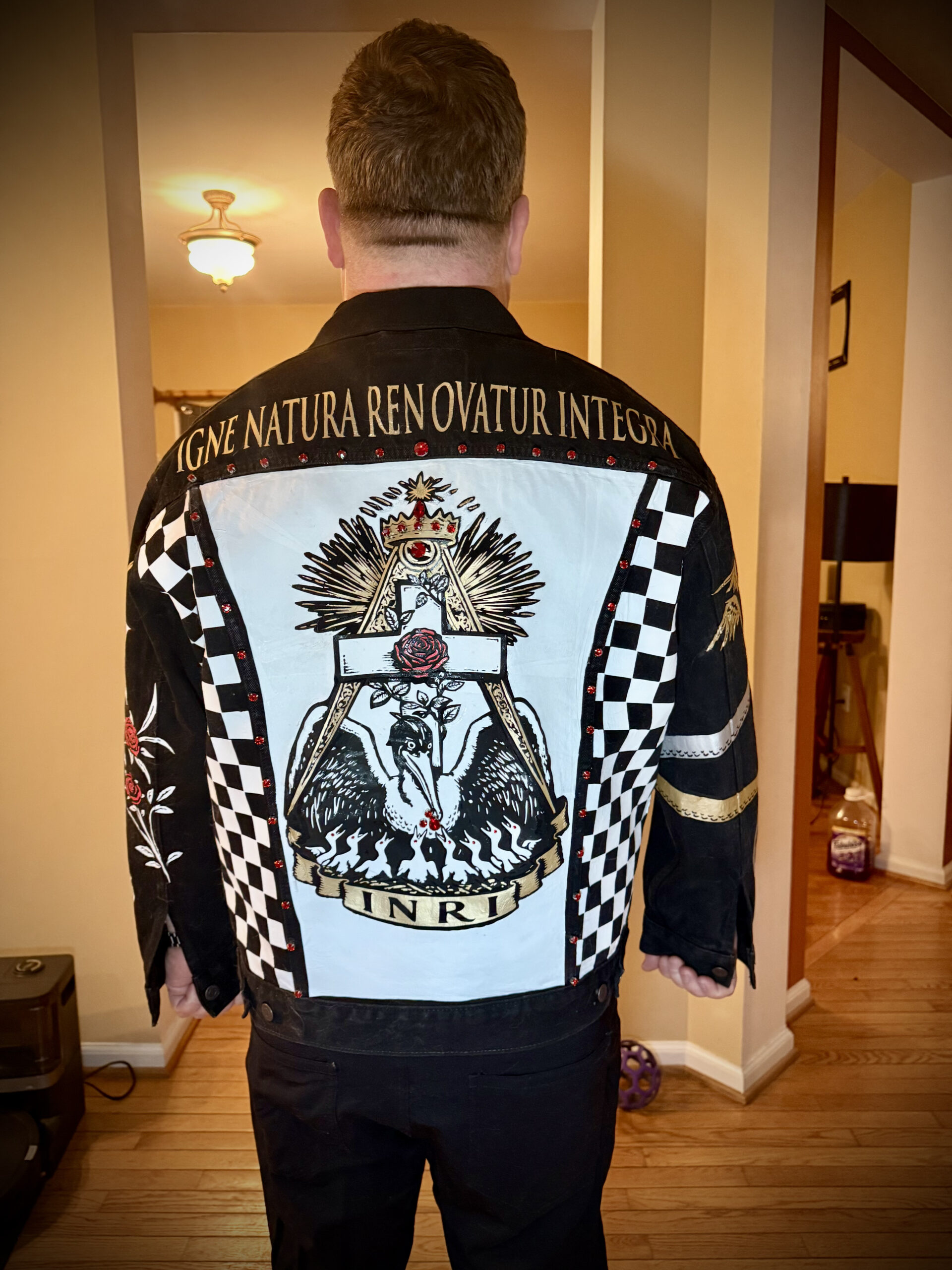 Custom Hand-Painted Rosicrucian Battle Jacket – “By Fire, Nature Is Renewed Entirely” Edition