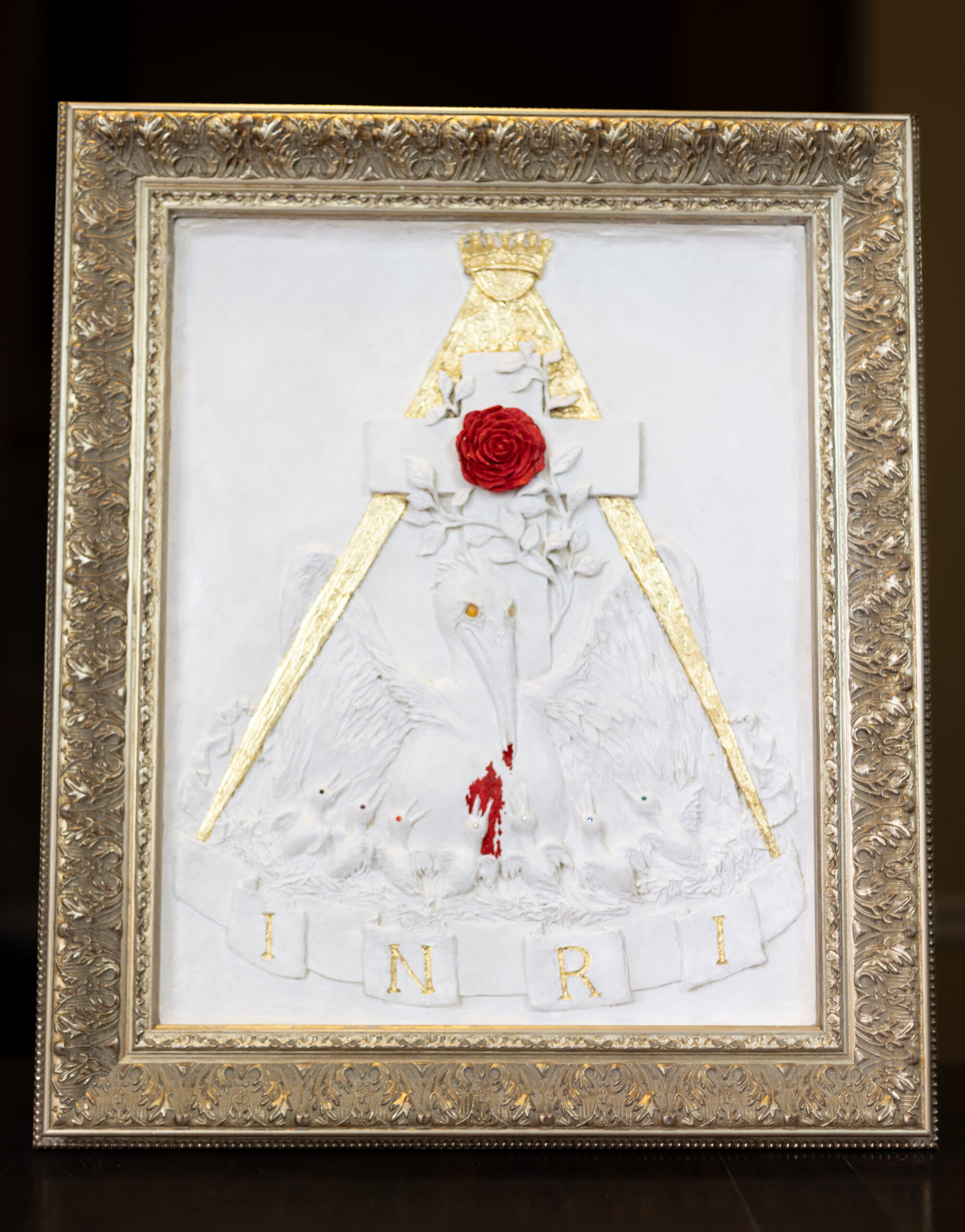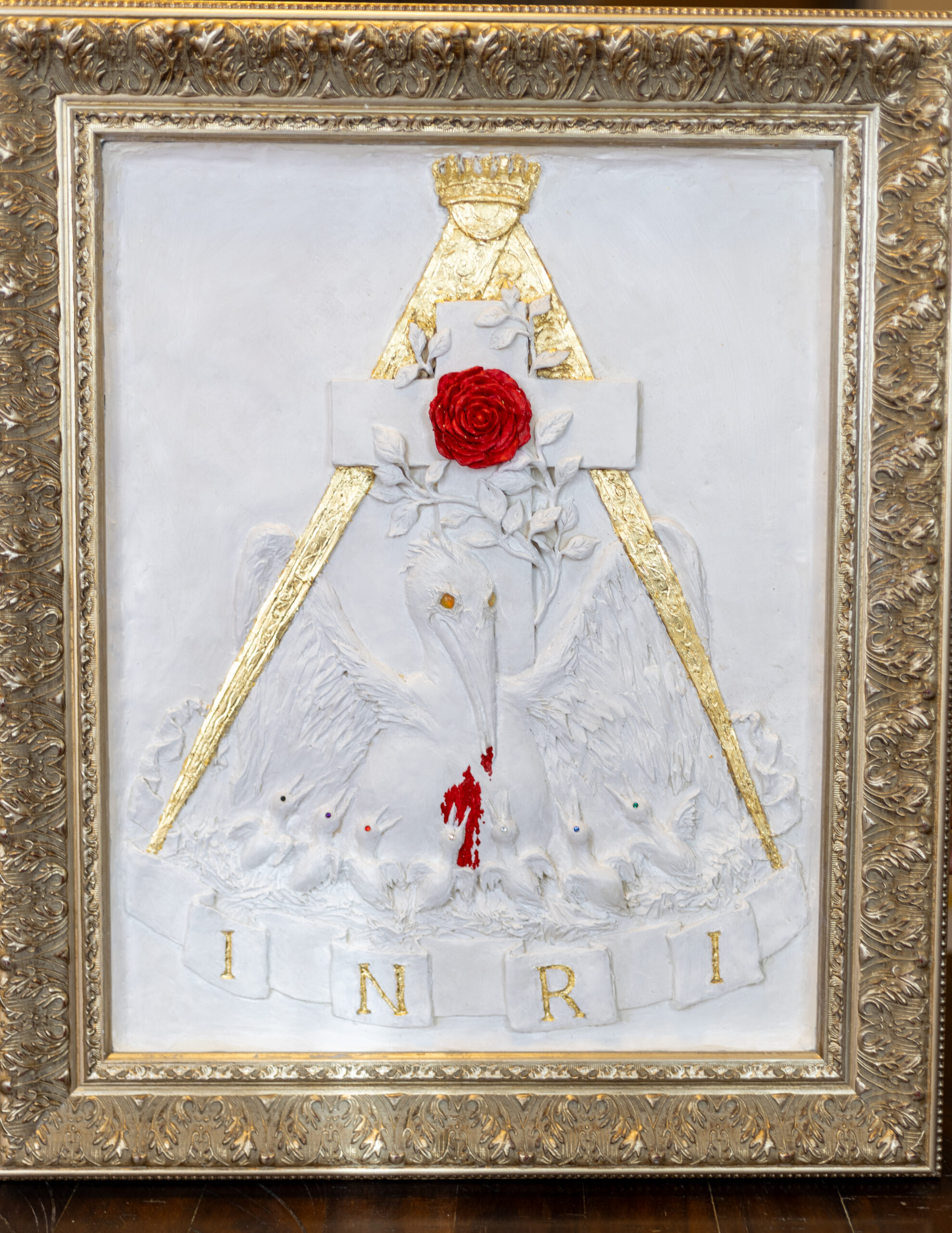 This exquisite bas-relief is a luminous tribute to one of the most profound symbols of the 18th Degree, Knight Rose Croix, in the Ancient and Accepted Scottish Rite: The Pelican in Her Piety.